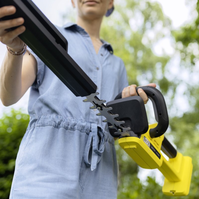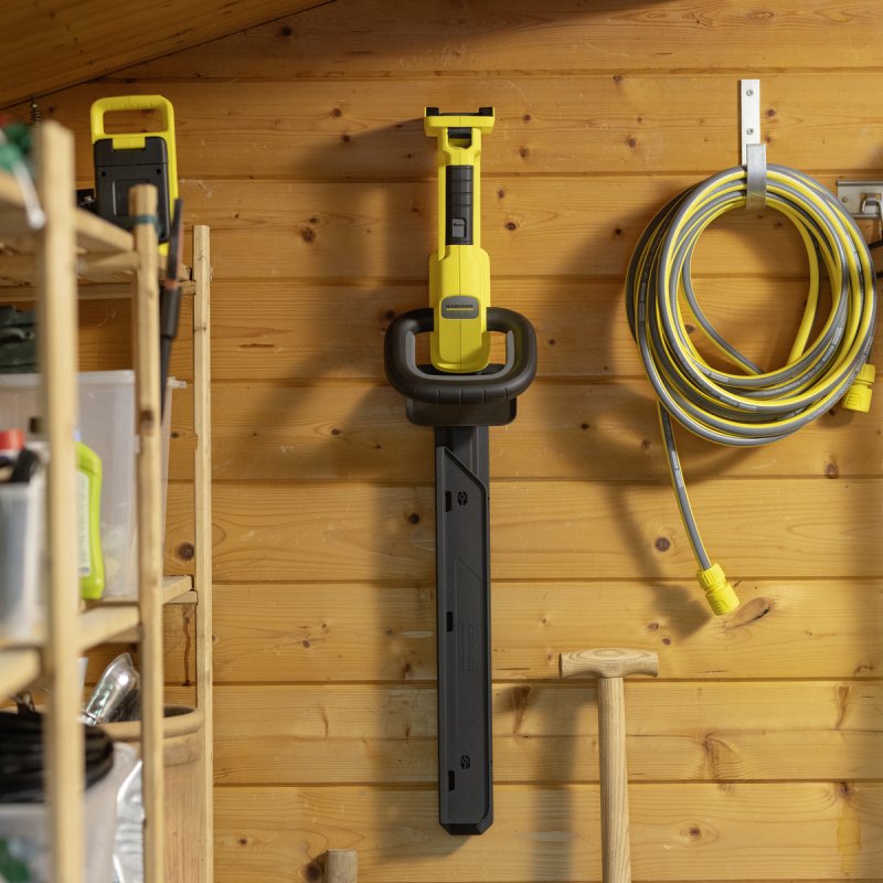 A Kärcher HGE 3-18 akkumulátoros sövényvágó precizitást és kényelmet visz a kertápolásba 18 V-os teljesítményével. A fogantyú 180°-ban elforgatható, így függőleges vágásnál is tökéletesen alkalmazkodik a munkakörülményekhez. Az 50 cm-es vágáshossz és a 22 mm-es fogosztású, gyémántköszörült penge minden alkalommal tiszta eredményt ad, a beépített fűrészelő funkcióval pedig a vastagabb ágak sem jelentenek akadályt. Fő előnye a kategóriájában a praktikus nyesedékseprő tartozék, amely vízszintes vágáskor azonnal a földre tolja a levágott ágakat, megkímélve Önt az utólagos tisztítástól. A pengevédő megóvja a kést a falak mentén, a beépített akasztógyűrű pedig helytakarékos tárolást tesz lehetővé. A csomag tartalmazza a védőburkolatot is, amely a nyesedékseprő tárolására is alkalmas.