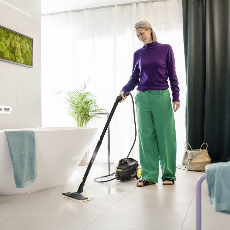 A Kärcher SC 3 EasyFix Go!Further limitált fekete kiadású gőztisztító, amely 35%-ban újrahasznosított műanyagból készült, exkluzív tartozékaival kiemelkedő tisztítási eredményt és kényelmet biztosít. A készülék mindössze 30 másodperces felfűtési idő után használatra kész, és a kemény felületekről eltávolítja a vírusok 99,999%-át, valamint a baktériumok 99,99%-át. A rugalmas csuklóval és lamellás technológiával ellátott EasyFix padlófej maximális ergonómiát és tökéletes tisztaságot garantál. A csomagban található Re!Fibe tisztítókendők 100%-ban újrahasznosított poliészterből készültek, és a tépőzáras rendszernek köszönhetően a kosszal való érintkezés nélkül cserélhetők. További exkluzív tartozék a rugalmas kézi fúvóka, amely ideális a makacs szennyeződések eltávolításához egyenes és ívelt felületeken, például mosdókagylókon vagy kádakon. A folyamatosan újratölthető víztartály megszakításmentes munkát tesz lehetővé, míg a beépített vízkőmentesítő patron automatikusan lágyítja a vizet, jelentősen növelve a készülék élettartamát.