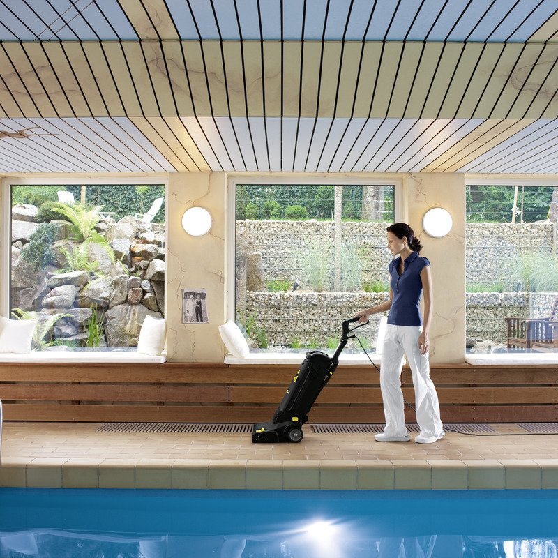 A Kärcher 90. évfordulója: a fekete színű BR 30/4 C Anniversary Edition olyan könnyen kezelhető, mint egy felállítható kefés porszívó. A hagyományos felmosással összehasonlítva a gép előnye, hogy tízszer nagyobb érintkezési nyomást biztosít a lényegesen magasabb tisztítási teljesítmény érdekében. Ehhez adjuk hozzá a körülbelül 1500 fordulatszámú hengersebességet. A szívás előre vagy hátrafelé működik. A makacs szennyeződésekhez a gumibetéteket is fel lehet emelni. Ez megnöveli a tisztítóvíz érintkezési idejét. A padló a tisztítás után azonnal száraz, ami csökkenti a csúszásveszélyt és lehetővé teszi, hogy ismét járható legyen. Tökéletes kisebb üzletek, éttermek, benzinkutak, szupermarketek, szaniterek, szállodai önkiszolgáló területek tisztítására, vagy használható a meglévő súrolószárítókkal együtt. Az Anniversary Edition szállítási terjedelme egy mikroszálas hengert is tartalmaz.