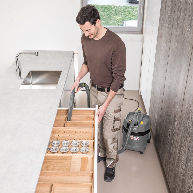 Tökéletes a kereskedők számára: az NT 22/1 Ap nedves-száraz porszívó elektromos aljzattal (amely automatikus indítási funkcióval van ellátva), erős szívóerővel és félautomata tisztító rendszerrel felszerelt. Kompakt, könnyű, belépő szintű eszköz.
