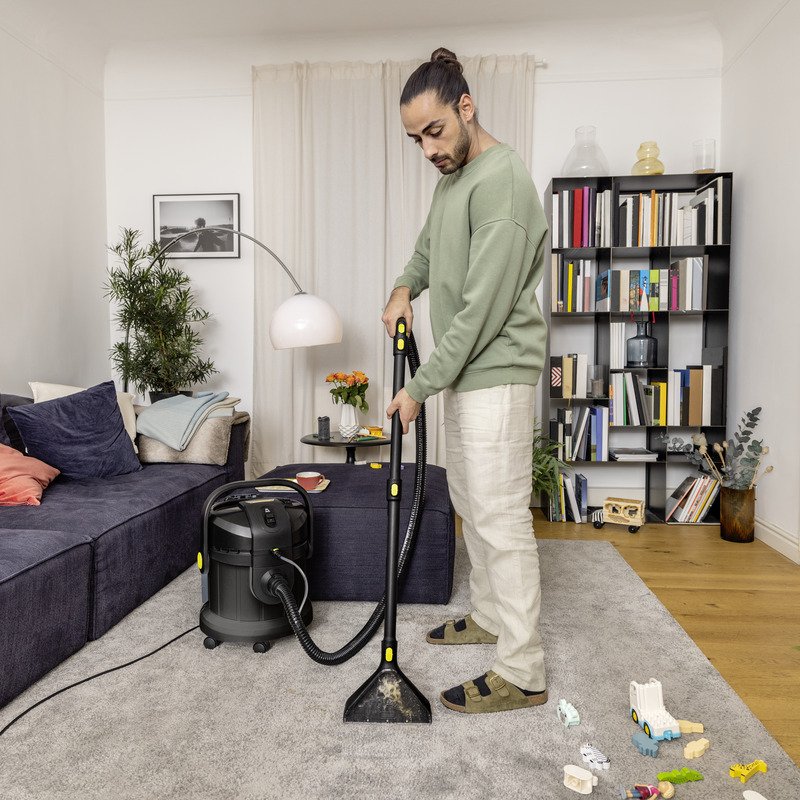 A Kärcher SE 4 Go!Further limitált, fekete kiadású kárpittisztító 25%-ban újrahasznosított műanyagból készült, és exkluzív tartozékaival kiemelkedő kényelmet és tisztítási eredményt nyújt. A mutatós, szánkó kialakítású készülék szálmélységig hatoló, higiénikus tisztaságot biztosít számos textilfelületen a Kärcher bevált permetextrakciós technológiájával: a friss vizet és az RM 519 tisztítószert nyomás alatt mélyen a szálak közé permetezi, majd a feloldott szennyeződéssel együtt azonnal vissza is szívja. Ez a megoldás ideális családok, allergiások és kisállatot tartók számára is. Az SE 4 Go!Further egy multifunkcionális, 3 az 1-ben termék, amely teljes értékű száraz-nedves porszívóként is funkcionál. A nagy méretű, áttetsző, 4 literes frissvíz-tartály ütésálló és levehető, így megtöltése és ürítése rendkívül egyszerű. A speciális 3 az 1-ben hordozófogantyú megkönnyíti a tartály szállítását, nyitását és zárását, a tartozékok pedig rendezetten, közvetlenül a készüléken tárolhatók. A hosszú élettartam érdekében a gép a használat után könnyen tisztítható.