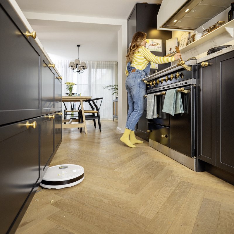 Több idő jut az élet kellemes dolgaira: az intelligens RCV 2 takarítórobot önállóan gondoskodik a padló tisztításáról. Az RCV 2 az indítás után szisztematikusan és önállóan tisztítja a keménypadlót és az alacsony bolyhos szőnyegeket. A nagy teljesítményű ventilátor segítségével a száraz szennyeződéseket a forgó kefe a beépített hulladéktárolóba gyűjti, az oldalsó kefe pedig a szélek mentén végzi el ugyanezt. Szükség esetén az RCV 2 nem csak porszívózik, hanem nedves felmosásra is képes - vagy akár mindkettőre egyszerre. A készülék erre a célra 2 az 1-ben tartályrendszerrel rendelkezik. A 420 milliliteres portartály mellett egy 250 milliliteres frissvíztartály is található. A munka végeztével vagy az akkumulátor kapacitásának lemerülésekor a robot visszatér a töltőállomásra. További érzékelők megakadályozzák, hogy például a készülék leessen a lépcsőn. Az RCV 2 kényelmesen elindítható az alkalmazás segítségével, a távirányítóval vagy a készüléken lévő gomb megnyomásával. Az alkalmazással beállíthatók az egyes tisztítási módok, illetve egyéni tisztítási ütemtervek is készíthetők. Ha a takarítórobotnak segítségre van szüksége, azt legtöbbször hangjelzéssel közli Önnel.