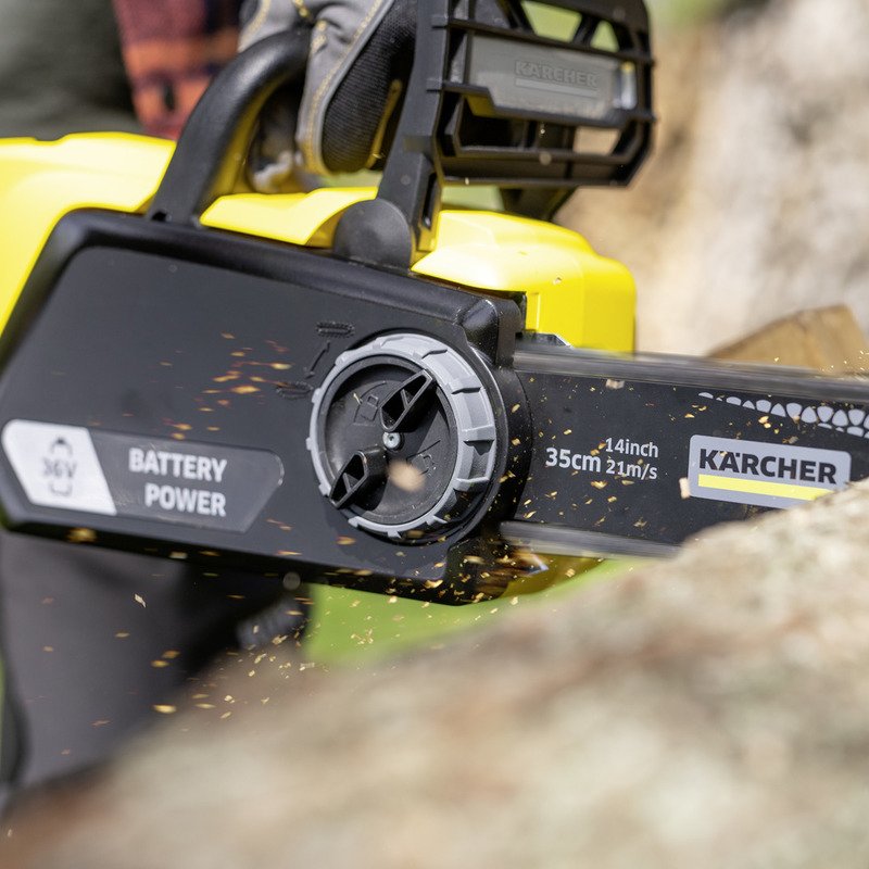 Még a vastag ágak sem fognak ki a CNS 36-35 akkumulátoros láncfűrészen a kimagasló láncsebességnek és az optimális vágási hosszának köszönhetően. A láncfeszítő rendszer, amelyhez nincs szükség semmilyen szerszámra, és az automatikus lánckenés rendkívül egyszerűvé teszi a fűrész használatát - a profik és a kezdők számára egyaránt. A láncfűrésszel a láncfék és a kétkapcsolós rendszer miatt mindig biztonságos a munka. A csomag a következőket tartalmazza: akkumulátoros láncfűrész, láncvezető, lánc, láncvezető tok és olajos palack.