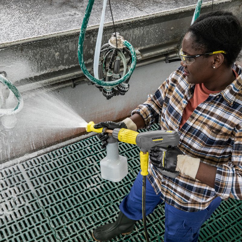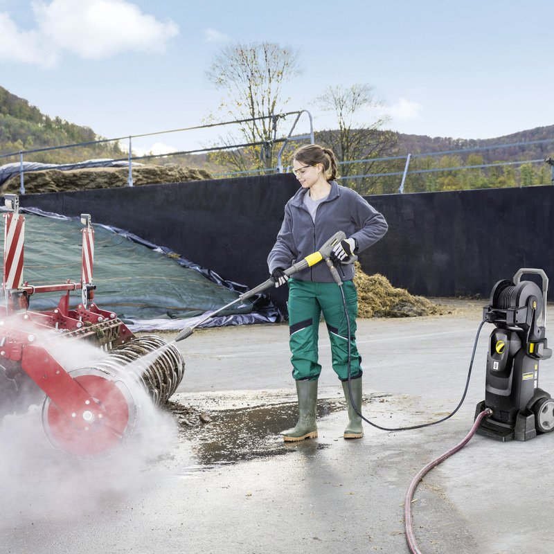 A Kärcher HD 8/18-4 MXA eB Foam Plus Go!Further hidegvizes magasnyomású mosó. Ez a limitált, fekete kivitelű gép a fenntartható ipari tisztítás csúcsa, burkolata 30%-ban újrahasznosított műanyagból készül, csomagolása pedig teljesen EPS-mentes, környezetbarát technológia. A gép lelke egy 4-pólusú, alacsony fordulatú háromfázisú motor, amely egy sárgaréz hengerfejjel és automatikus nyomáscsökkentéssel ellátott, robusztus, 3-dugattyús tengelyirányú szivattyút hajt meg a maximális élettartam érdekében. A készülék rugóhajtású automata tömlődobbal, integrált tartozéktárolókkal és visszahúzható tolókarral rendelkezik a kiemelkedő mobilitásért. Az exkluzív csomag tartalma az eco!Booster fúvóka, egy LED-es fúvókavilágítás, valamint a Foam Plus rendszer 1 liter RM 82N tisztítószerrel. A szivattyúhoz és az elektromos dobozhoz való közvetlen hozzáférés egyszerűsíti a karbantartást, így ez a modell a legmagasabb ökológiai és szakmai elvárásoknak is megfelel az építőipar és az ipari szektor számára.