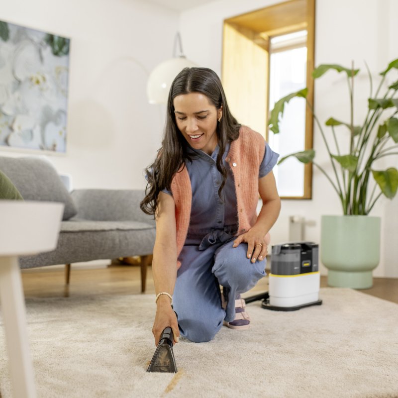 A Kärcher SE 2 Spot Care kárpittisztító a tökéletes segítség a kárpitokon és textíliákon keletkező foltok azonnali, célzott eltávolításához. A készülék gyorsan leszámol a szennyeződésekkel és szagokkal, hatékonyan tüntetve el például az étel- és italfoltokat. Kompakt kialakításának köszönhetően rendkívül egyszerűen kezelhető és kis helyen is tárolható, így váratlan helyzetekben is azonnal bevethető. A termék fő előnye a kategóriájában egyedülálló mobilitás és a professzionális permetextrakciós technológia ötvözése: a 4,5 méteres kábel nagy hatótávolságot biztosít, míg a praktikus, gépen belüli tartozéktárolás révén minden elem azonnal kéznél van. A csomag tartalmazza a folteltávolító kefét, a kárpittisztító fejet és a tisztítószert is.