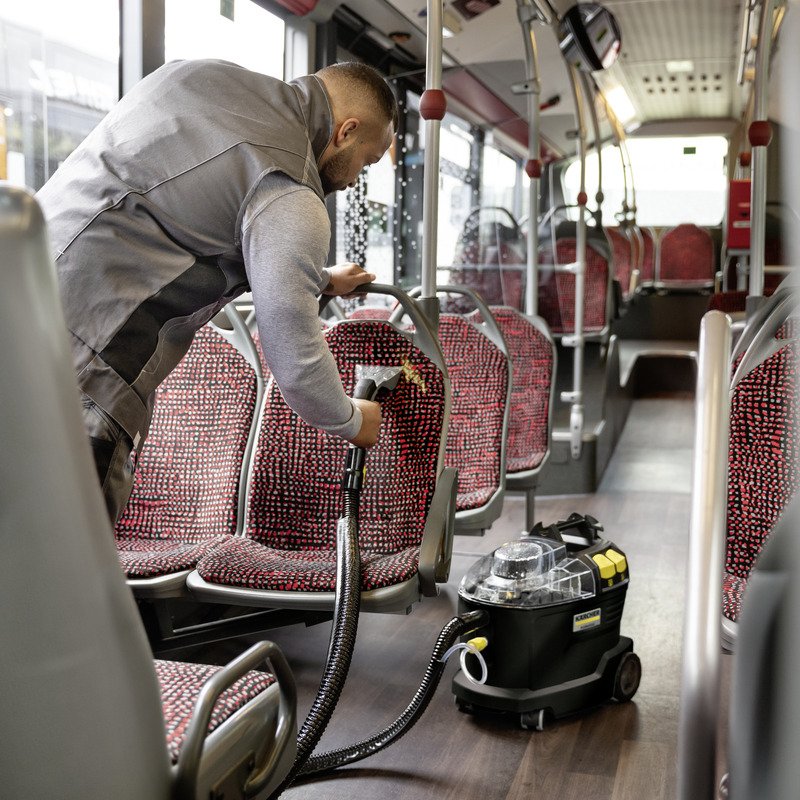 A Kärcher Puzzi 8/1 Go!Further permetextrakciós tisztítógép. Ez az exkluzív, fekete színű limitált kiadás a professzionális hatékonyságot fenntartható gyártástechnológiával ötvözi, hiszen háza 44%-ban újrahasznosított műanyagból készül. A gép legfőbb technikai előnye a kimagasló költséghatékonyság és a higiénikus tisztítási teljesítmény: a tisztítóoldatot mélyen a szálak közé juttatja, majd az erős szívókapacitás révén a feloldott szennyeződéssel együtt távolítja el, minimális maradéknedvességet és gyors száradást biztosítva. Az alapfelszereltség részét képezi egy extra rövid kárpittisztító fej a szűk helyek eléréséhez, valamint egy 1 literes RM 764N OA tisztítószer. Csekély súlya, ergonomikus hordozófogantyúja, valamint a folyamatos vizuális kontrollt biztosító transzparens fedél és fúvóka teszik ezt a környezettudatos modellt ideális választássá az autókozmetikák és a vendéglátóipar számára.