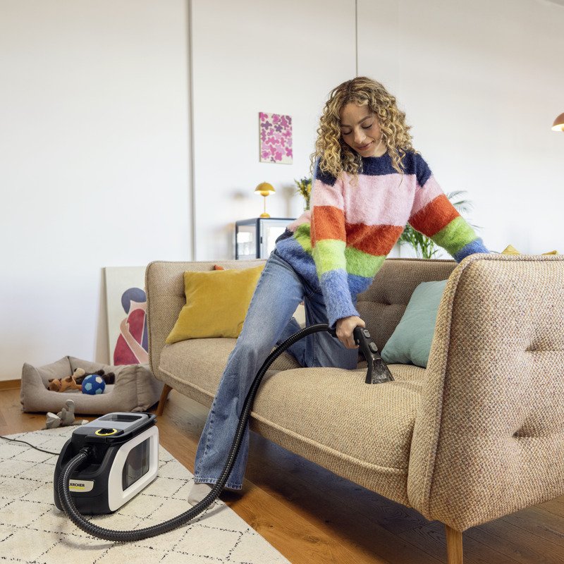 A Kärcher SE 3 Compact Home Shoe N1 kárpittisztító kompakt és energiahatékony készülék, amely a szálak mélyéig tisztítja a textileket, gyorsan és hatékonyan távolítva el a szennyeződést szőnyegekről és kárpitokról. A rugalmas szívótömlő és a praktikus tárolási lehetőségek maximális kényelmet biztosítanak, a mellékelt Shoe!Cleanerrel pedig sport- és szabadidőcipők is alaposan, gyorsan és cseppmentesen tisztíthatók, miközben az automatikus vízelszívás gyors száradást biztosít. A 2 az 1-ben tartályrendszer megakadályozza a szennyeződés érintését, a higiénikus rendszer tisztító funkció pedig a baktériumok és kellemetlen szagok kialakulását is megelőzi. A csomag tartalmazza a Shoe!Cleanert, a spray extrakciós réstisztító fejet és az RM 519N természetes tisztítószert.