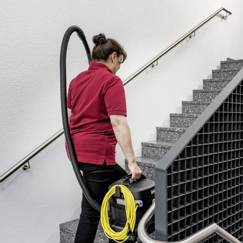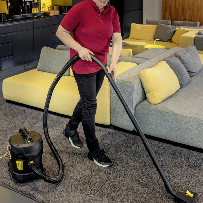 A Kärcher T 11/1 Classic Adv Go!Further szárazporszívó. Ez a limitált, fekete kivitelű modell a Kärcher legmagasabb szintű fenntarthatósági törekvéseit képviseli, burkolata 60%-ban újrahasznosított műanyagból készül. A gép legfőbb technikai előnye a kimagasló szívóteljesítmény és a rendkívül alacsony, mindössze 61 dB(A) zajszint kombinációja, amely lehetővé teszi a munkavégzést a legzajérzékenyebb területeken is. A 11 literes tartálykapacitás ellenére a készülék csupán 4 kilogramm, így az ergonomikus hordozófogantyúval és a beépített könyökcsővel kiegészítve hosszú távon is fáradságmentes használatot biztosít. A felhasználó által is könnyen cserélhető, 12 méter hosszú hálózati kábel, a tartozékok számára kialakított integrált tárolóhelyek, valamint az exkluzív csomagban található 10 darab flíz porzsák teszik ezt a robusztus eszközt a szállodák és irodaházak legoptimálisabb ár-érték arányú, környezettudatos választásává.